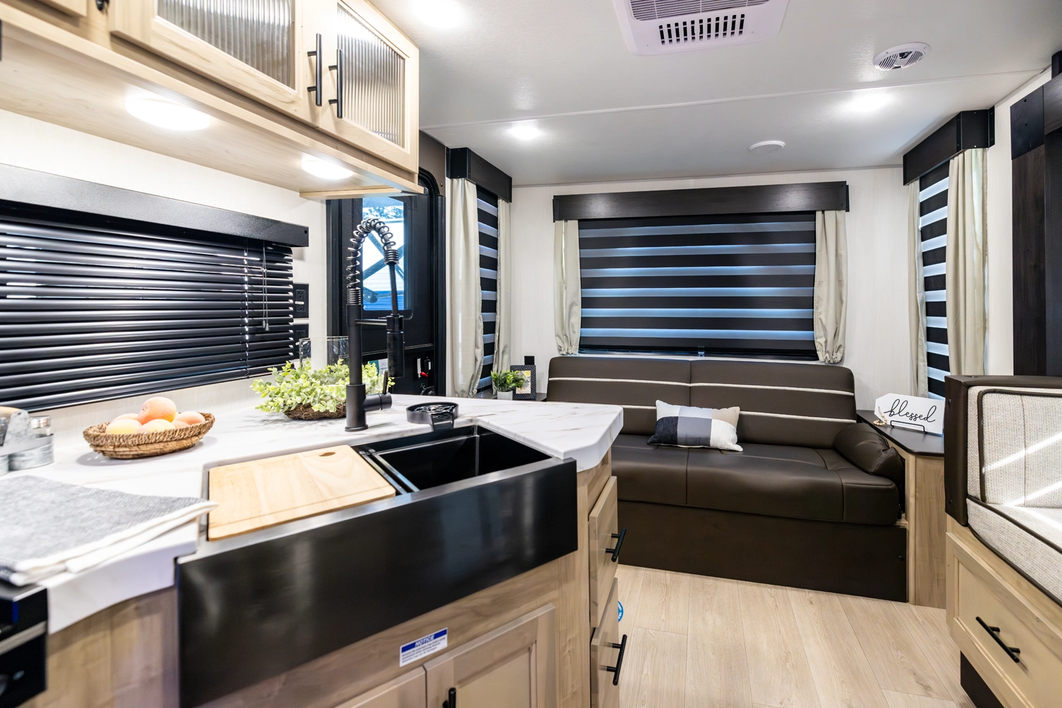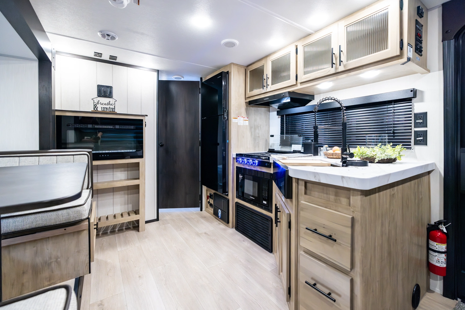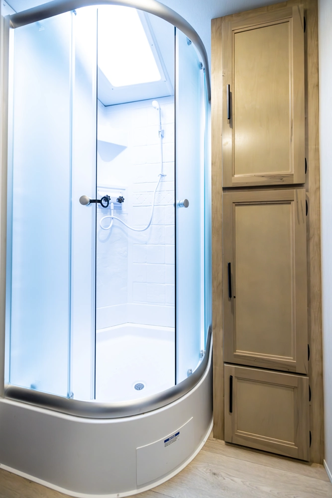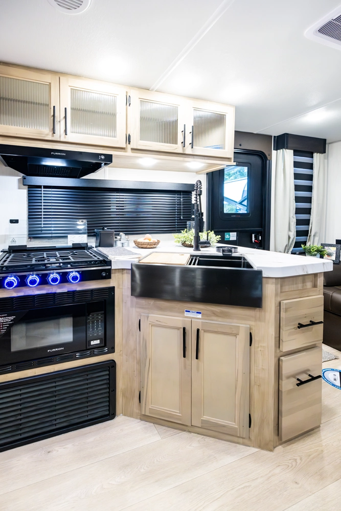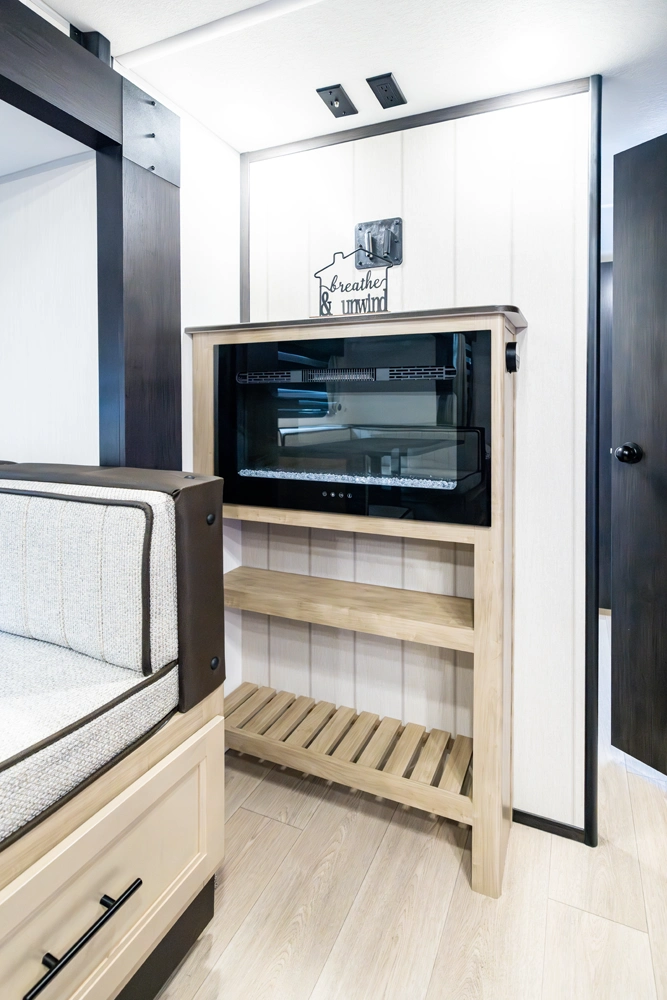 The Grey Wolf 23MK by Forest River is a perfect travel trailer for families and couples alike. The spacious U-shaped dinette, situated in a slide-out, offers ample seating and sleeping space. The rear sofa provides additional seating and a comfortable TV viewing area. The modern kitchen, with its full-size pantry, offers plenty of storage and prep space. The private master suite, with a queen-size bed and a full bathroom, provides a peaceful retreat.