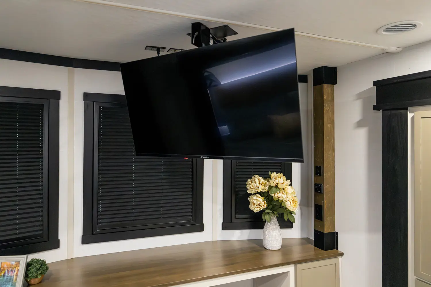 • Leuvered Openings Above Custom King Bed Loft